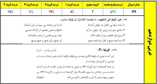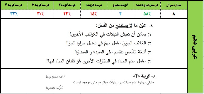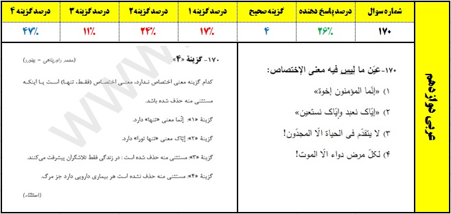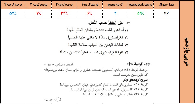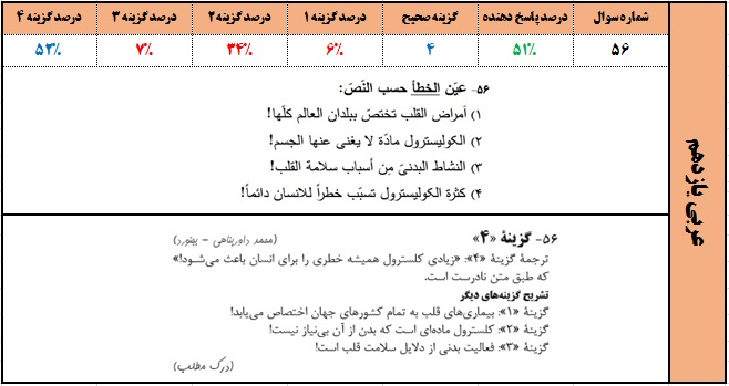 برای استفاده بیشتر دانش آموزان ، متن سوال های دام دار ، درصد پاسخ به این سوال ها ، گزینه صحیح ، درصد پاسخ به هرگزینه و درصد پاسخ به گزینه صحیح را نیز آورده ایم.شما با دنبال کردن این مطلب می توانید تا روز کنکور حدود 150 تا 200 سوال دام دار و اشتباهات متداول دانش آموزان را یاد بگیرید.