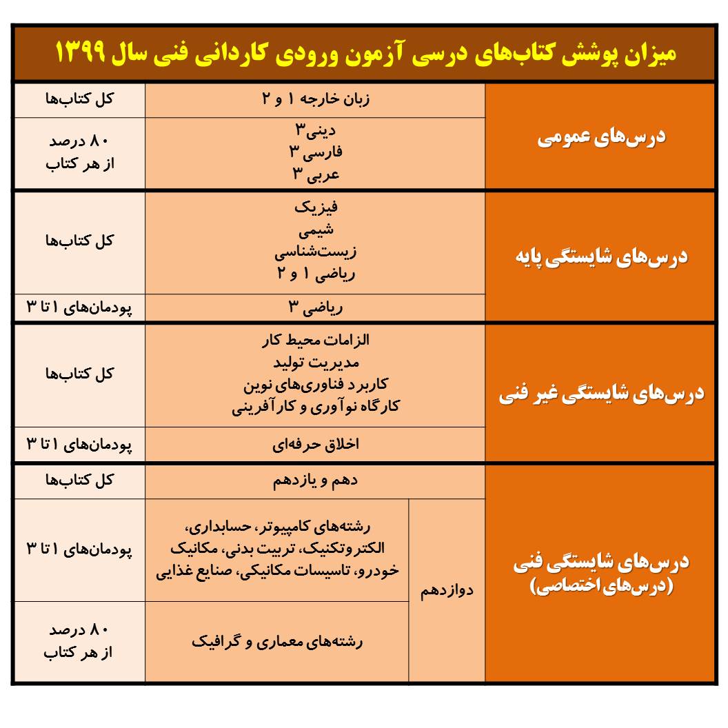 جدول زیر جزییات کامل پوشش کتابهای درسی در کنکور 99 را نشان میدهد: