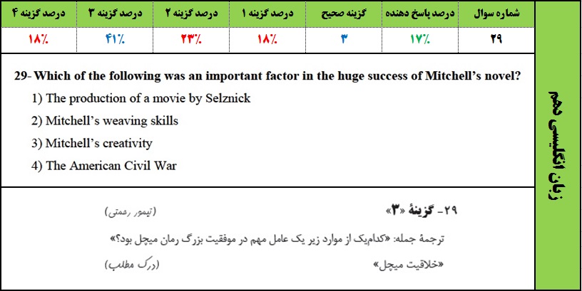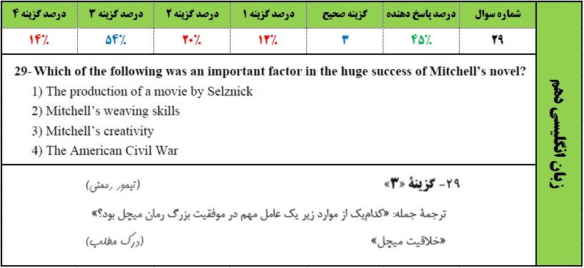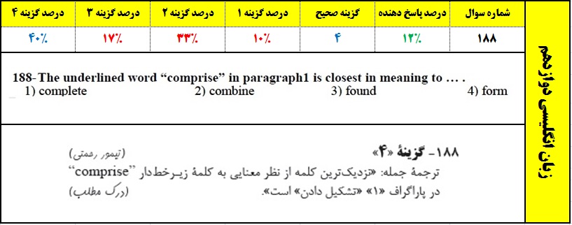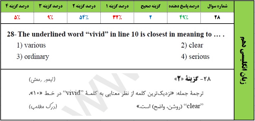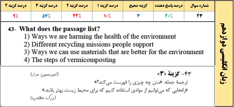برای استفاده بیشتر دانش آموزان ، متن سوال های دام دار ، درصد پاسخ به این سوال ها ، گزینه صحیح ، درصد پاسخ به هرگزینه و درصد پاسخ به گزینه صحیح را نیز آورده ایم.شما با دنبال کردن این مطلب می توانید تا روز کنکور حدود 150 تا 200 سوال دام دار و اشتباهات متداول دانش آموزان را یاد بگیرید.