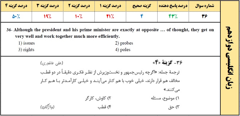 هم چنین برای پایه های های دهم و یازدهم و دوازدهم سوال های جداگانه انتخاب شده تا علاوه برکنکوری ها ، دهمی ها و یازدهمی ها هم از این مطلب بهره آموزشی ببرند.