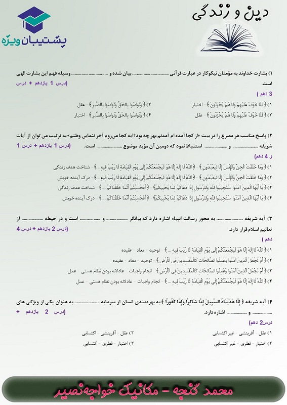 در این مجموعه 24 تست ترکیبی دینی یازدهم به همراه پاسخ کاملا تشریحی تهیه شده است. در دوران جمع بندی این تیپ تست ها خیلی کمک خواهند کرد. در کنکورهای اخیر هم این تیپ سوالات زیاد دیده شده پس اهمیت زیادی دارند.