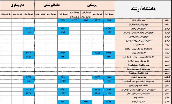 خانه های آبی رنگ: رشته هایی که تراز در آزمون های کانون بیشتر از 6000 می باشد.