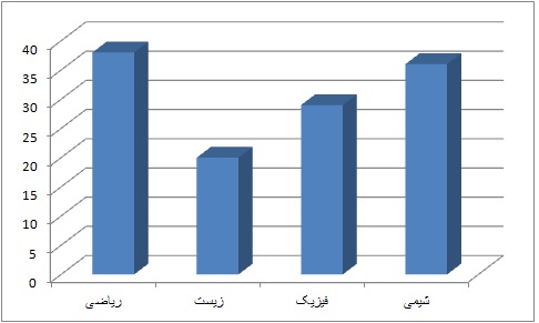 در درسهای اختصاصی همانطور که نمودار زیر نشان می دهد، درسهای ریاضی و شیمی دشوارتر از نظر شرکت کنندگان در بازه ترازی شما ارزیابی شد: