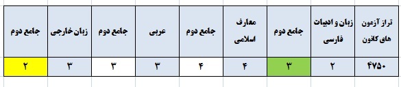 میانگین درسهای عمومی در آزمون امروز بدین شرح است: