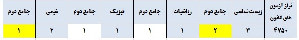 میانگین درسهای اختصاصی در آزمون امروز بدین شرح است: