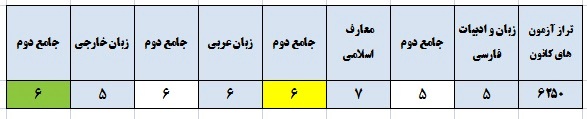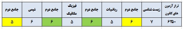 میانگین درسهای اختصاصی در آزمون امروز بدین شرح است: