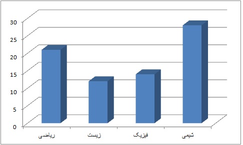 در درسهای اختصاصی همانطور که نمودار زیر نشان می دهد، درس شیمی دشوارتر از نظر شرکت کنندگان در بازه ترازی شما ارزیابی شد: