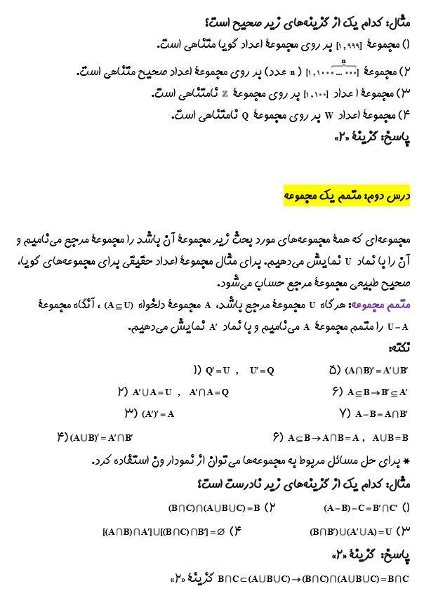 سلام به همه ی دهمی ها عزیز در این مطلب درسنامه ریاضی دهم تجربی برای آمادگی شما در آزمون قرار داده شده