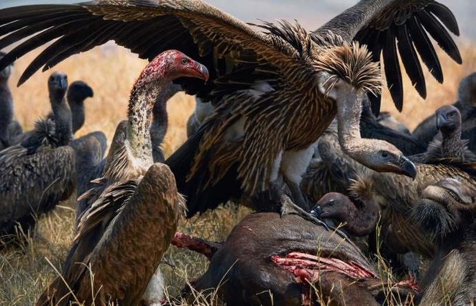 اینها لاشخورهای پشتسفید هستند که طعمهی آنها را شکارچیان مسموم میکنند.