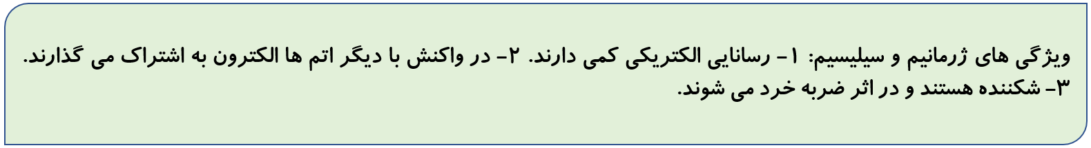 کامنت  کاربر: رسانایی الکتریکی کربن بیشتر است یا سیلیسیم و ژرمانیم؟_تاریخ ثبت: 13990509