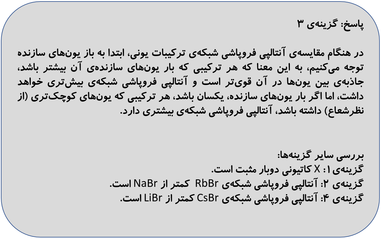 کامنت کاربر: چجوری آنتالپی فروپاشی دو تا ترکیب رو باهم مقایسه میکنین اول مقایسه کاتیون بعد آنیون؟_تاریخ ثبت: 13990513