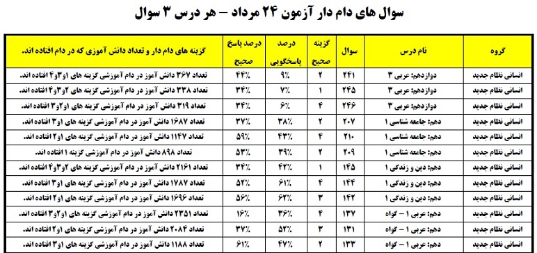 سوال های دام دار نیز سوال هایی می باشند که تعداد زیادی از دانش آموزان در دام آموزشی یکی از گزینه های آن ، گرفتار شده اند. گزینه های دام دار و تعداد کسانی که در دام آموزشی افتاده اند نیز مشخص شده است. با مطالعه این سوال ها ، نکات و دام های آموزشی گزینه های این سوال ها را فرا خواهید گرفت.