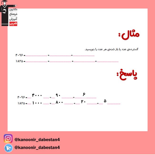 نکات گسترده نویسی فصل دوم ریاضی سوم دبستان(به همراه مثال)
