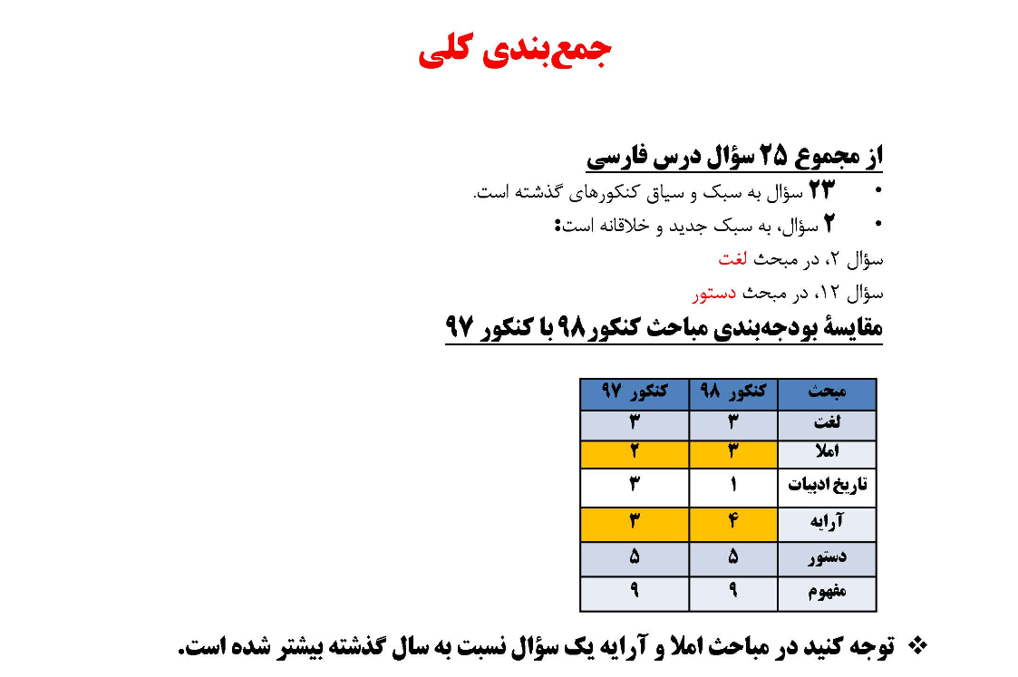 رویکردها و گرایشهای فارسی در کنکور 98-منحصراً زبان