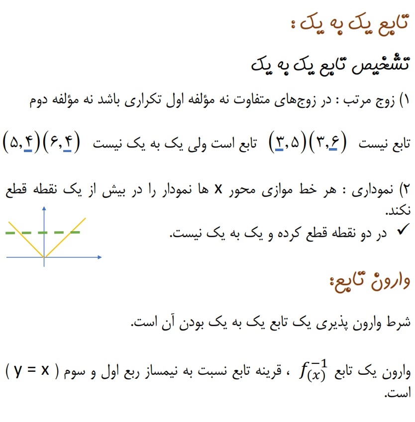 فایل ضمیمه شامل درسنامه مروری به همراه حل تست، جهت جمع بندی مبحث تابع یک به یک و وارون است. * گروه پشتیبانان ویژه کانون *