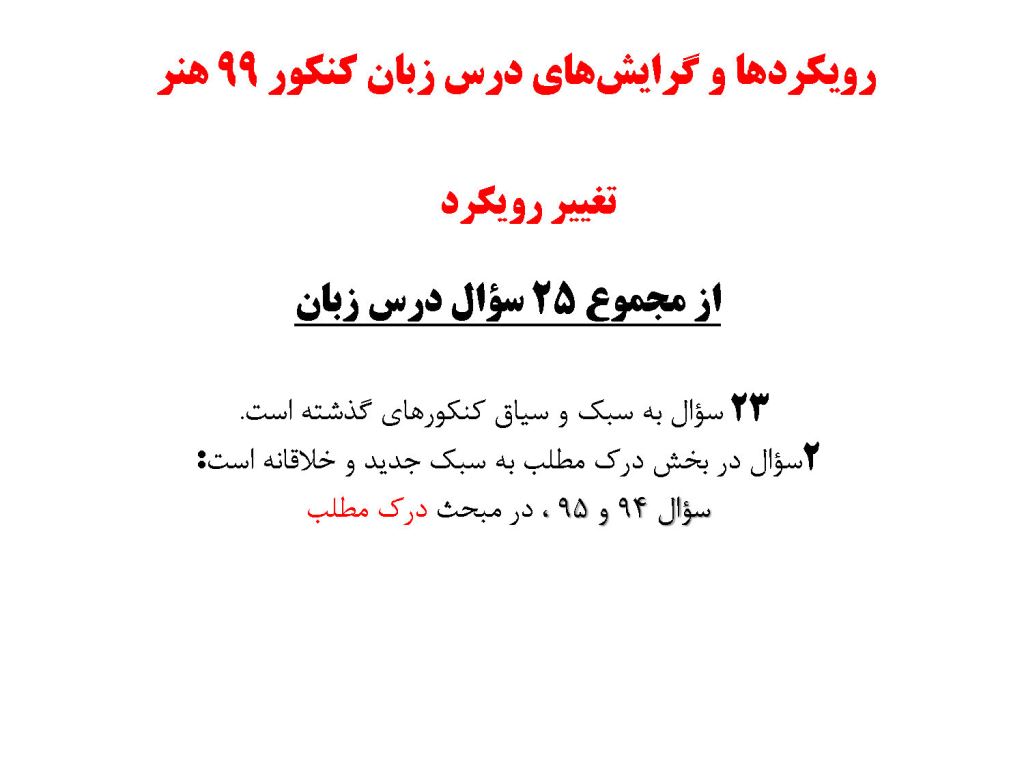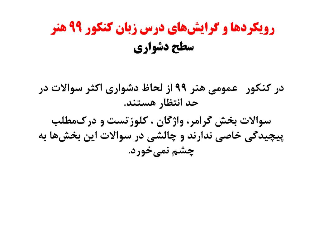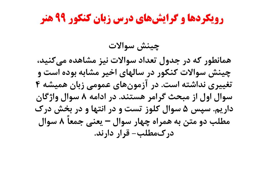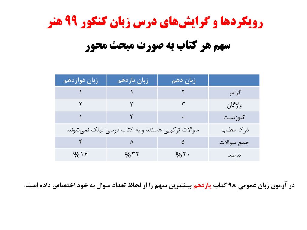 رویکرد کنکور هنر 99 در درس زبان انگلیسی (نظام جدید)