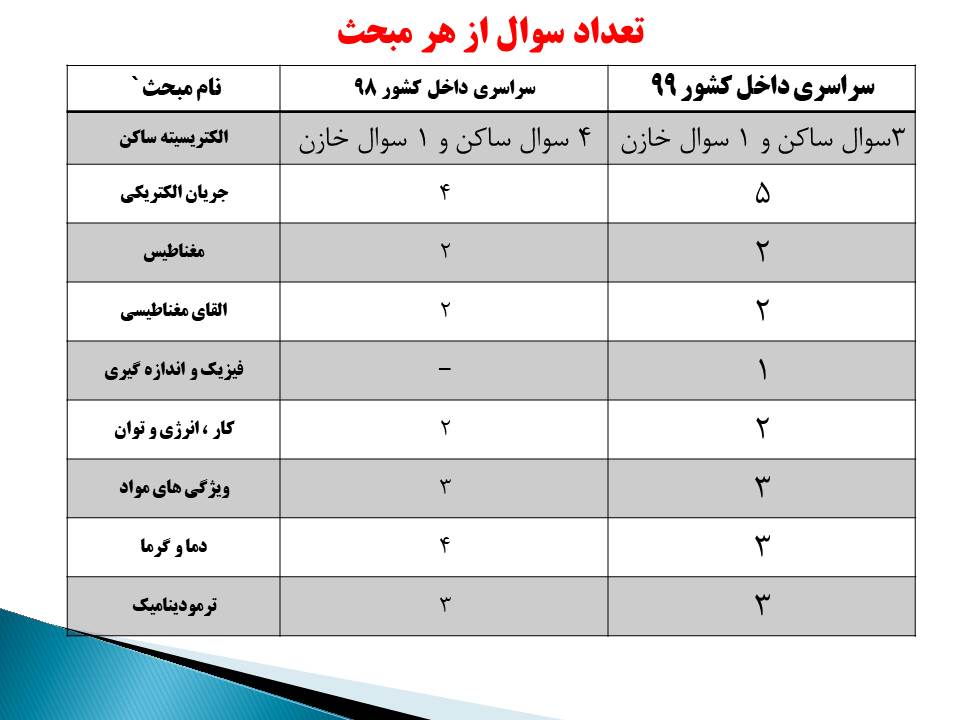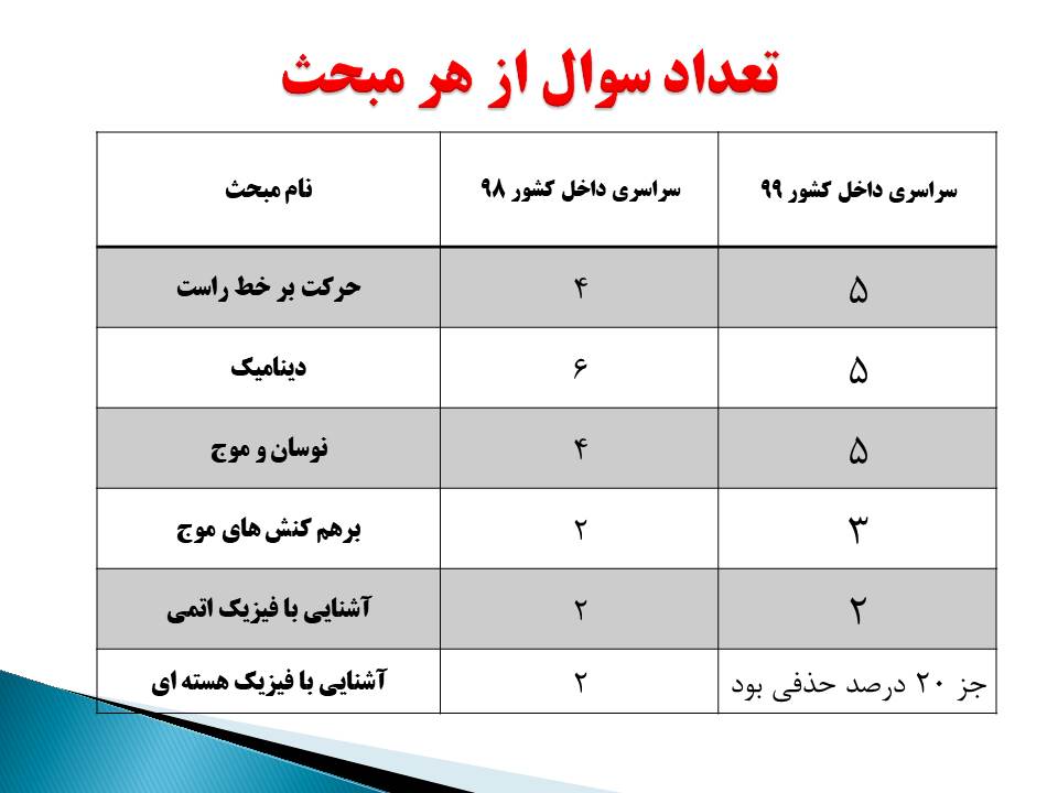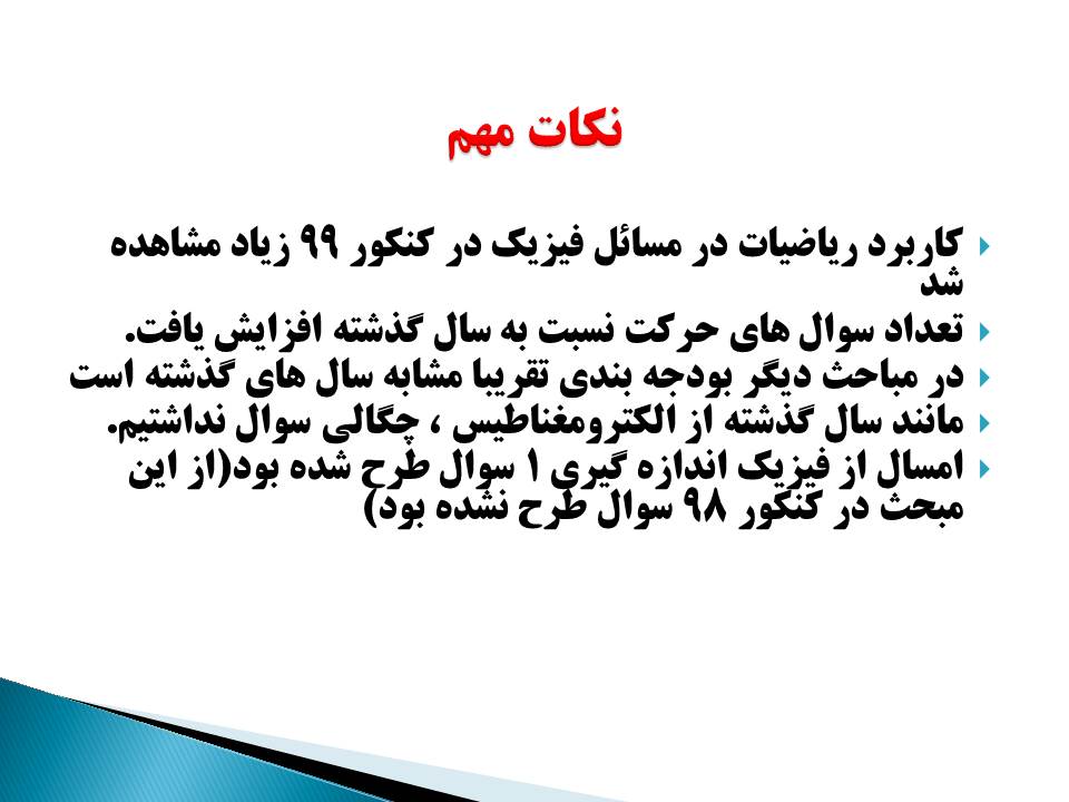 در مطلب زیر رویکرد سوالهای فیزیک کنکور 99 را مشاهده میکنید