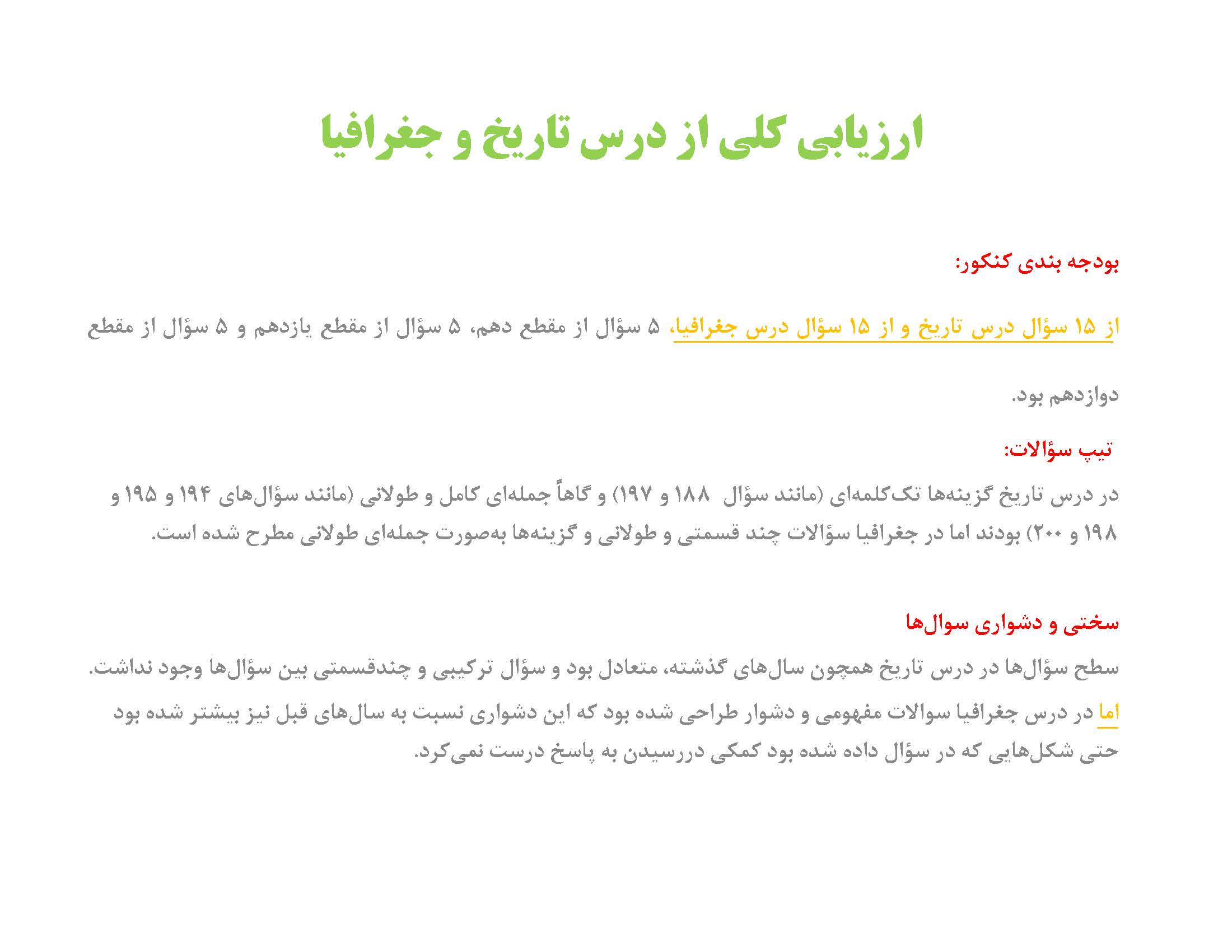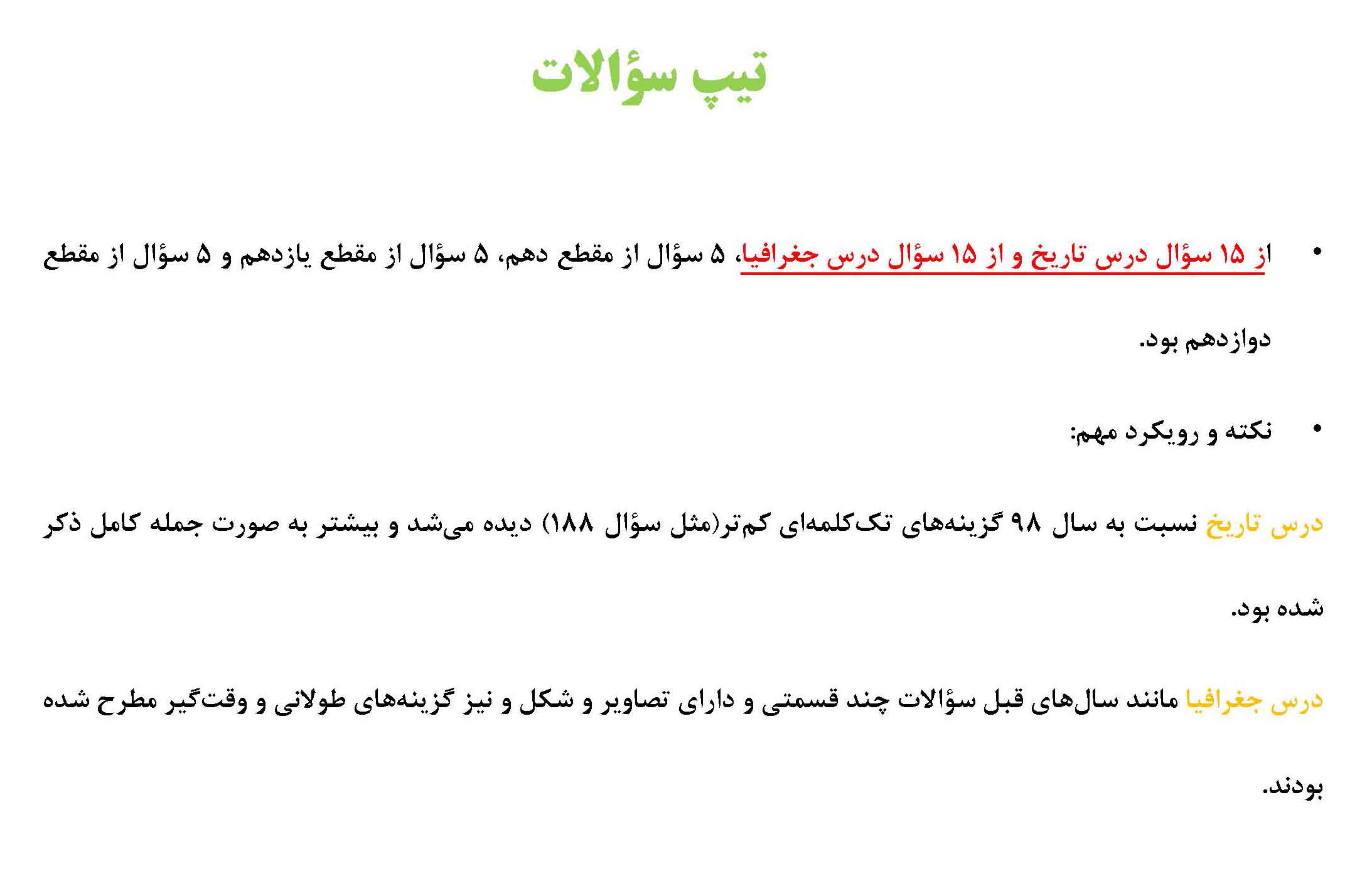 تحلیل رویکرد کنکور 99 درس تاریخ و جغرافیا