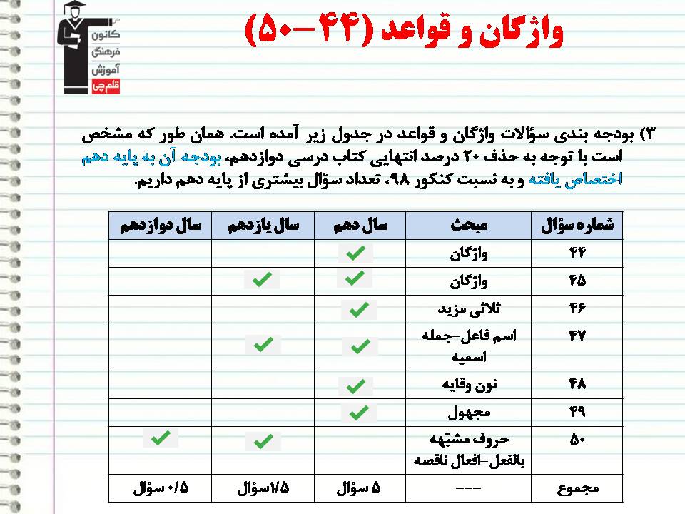 بودجه بندی درس ها در کنکور