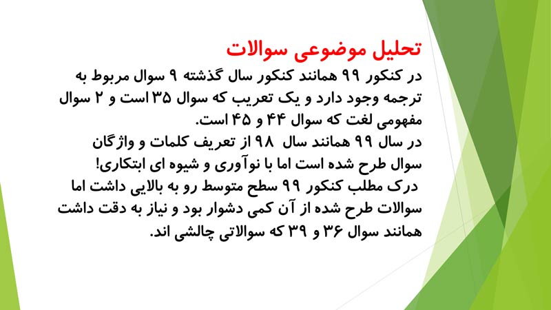 احمد منصوری : رویکردهای کنکور انسانی 99 در درس عربی