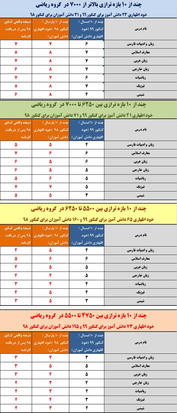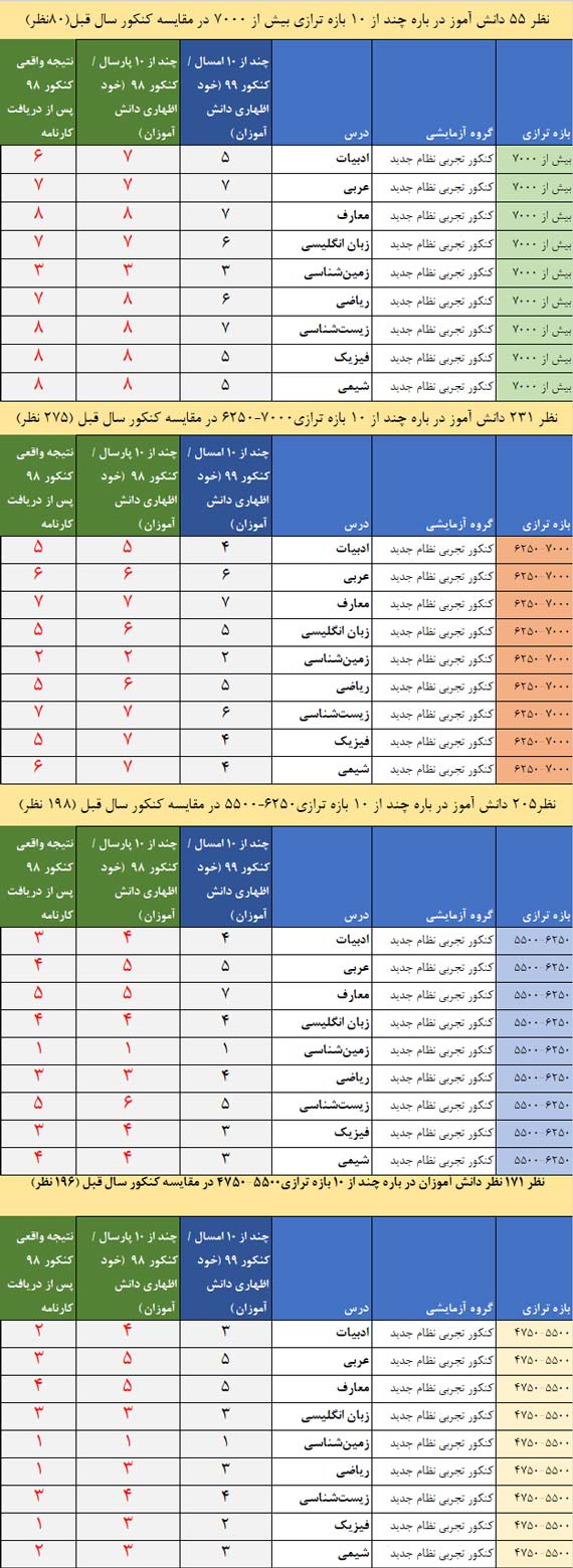 جمع بندی نظر دانش آموزان در بازه های ترازی مختلف را به اطلاع شما می رسانیم.