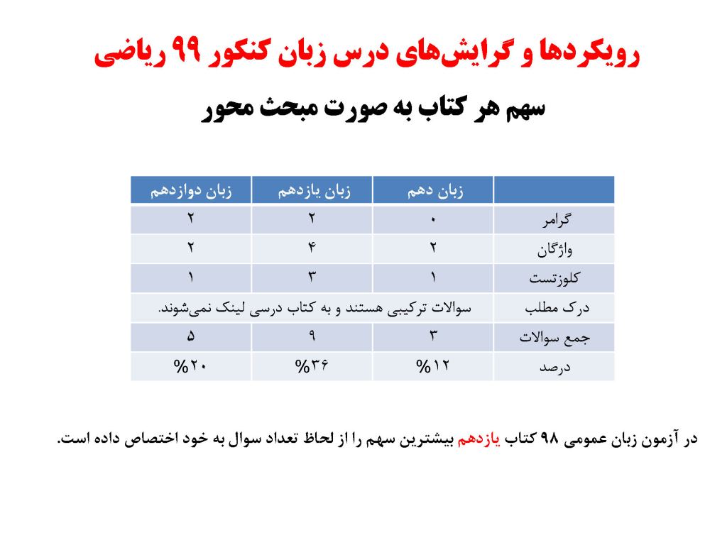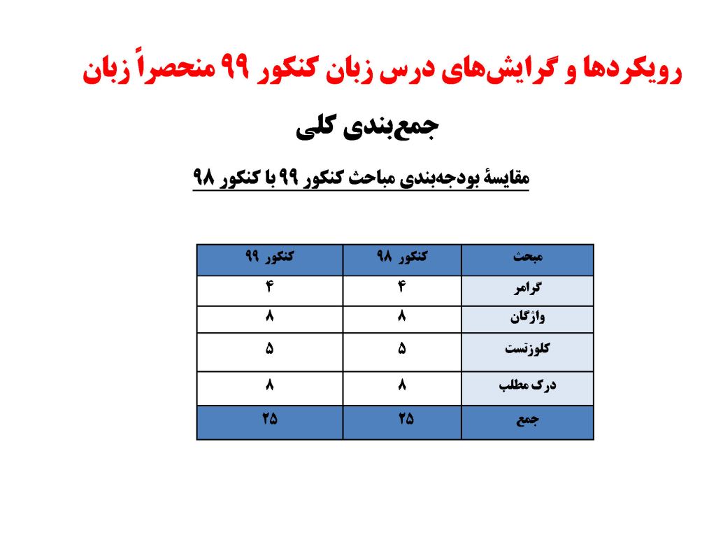 رویکرد کنکور منحصراً 99 در درس زبان عمومی (نظام جدید)