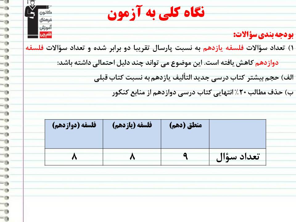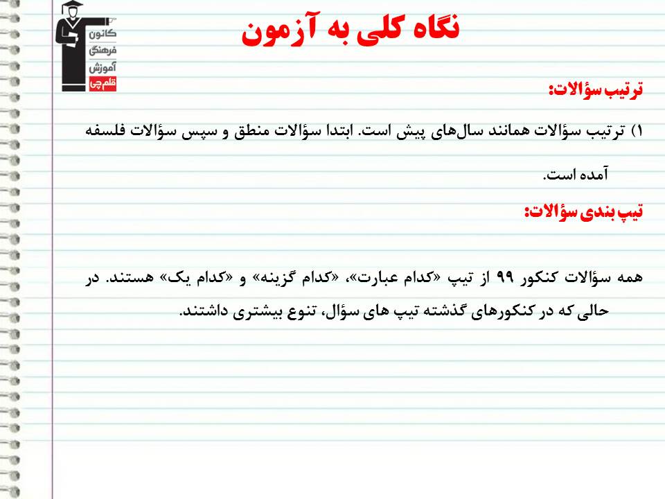 تحلیل رویکردهای فلسفه و منطق در کنکور انسانی 99