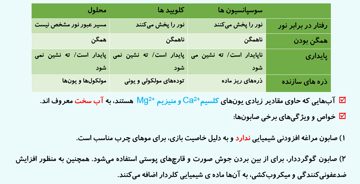 پاسخ کامنت  محمدطاها رستمی، تجربى نظام جدید -  سنندج - میانگین تراز 6388: اره وقتی میگه مشخصه منظور اینه که ذرات حل شونده درشت هستن و پس از بازخورد باهاشون بازتاب میشه پس برای کلویید و سوسپانسیون پخش نور داریم و برای محلول‌ها خیر._تاریخ ثبت: 13990429