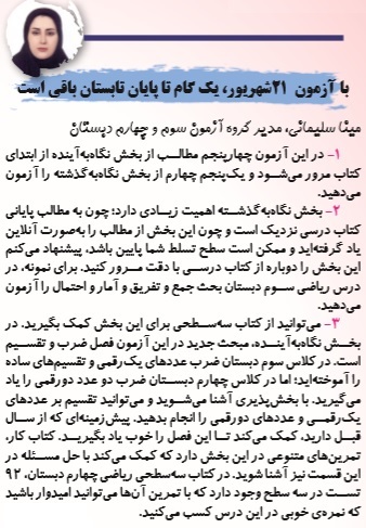نکاتی درباره آزمون 21 شهریور چهارم دبستان را مشاهده نمایید.
