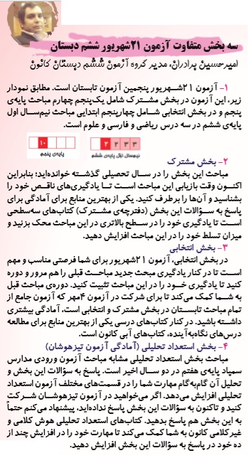 نکاتی درباره آزمون 21 شهریور ششم دبستان
