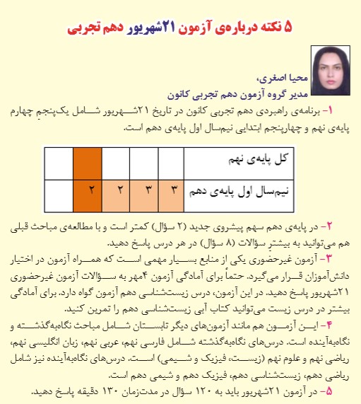 نکاتی درباره آزمون 21 شهریور دهم تجربی