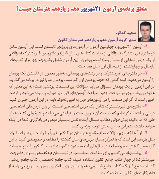 نکاتی درباره آزمون 21 شهریور دهم هنرستان