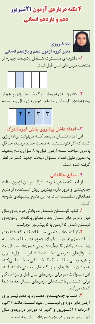 نکاتی درباره آزمون 21 شهریور یازدهم انسانی