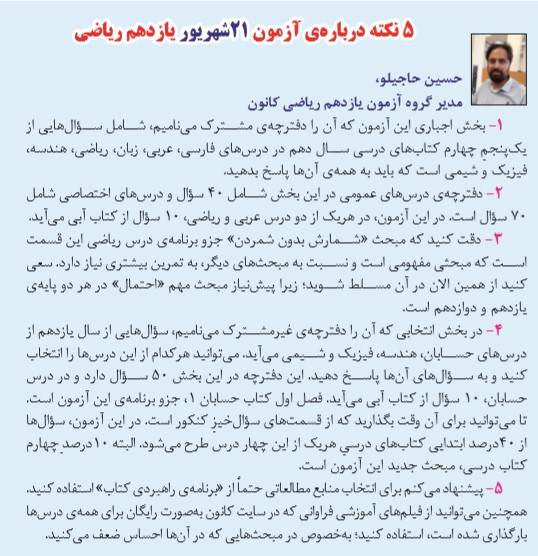 نکاتی درباره آزمون 21 شهریور یازدهم ریاضی