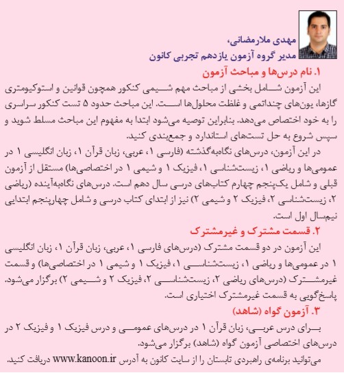 نکاتی درباره آزمون 21 شهریور یازدهم تجربی