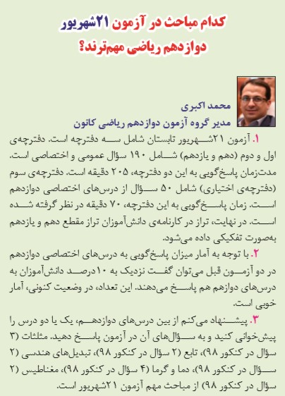 نکاتی درباره آزمون 21 شهریور دوازدهم ریاضی