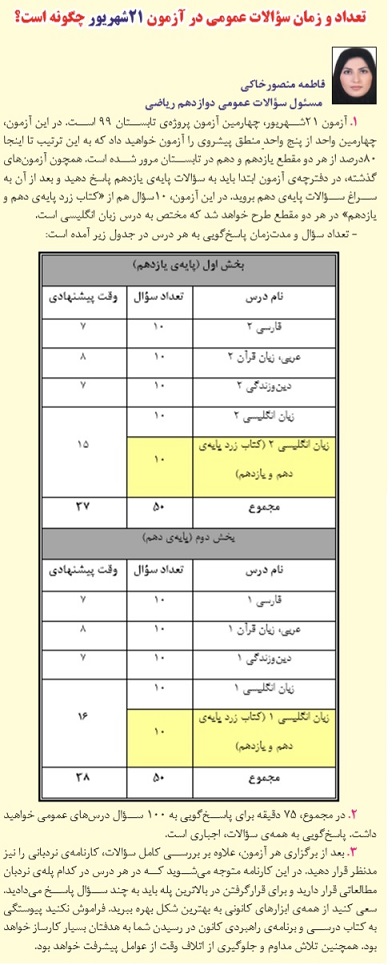 نکاتی درباره آزمون 21 شهریور دوازدهم ریاضی را مشاهده نمایید.