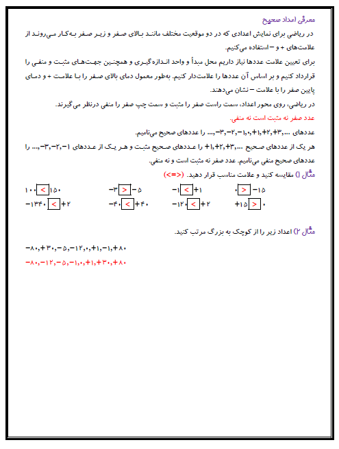 درسنامه ریاضی- ششم دبستان- فصل اول: معرفی اعداد صحیح