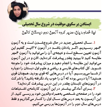 نکاتی درباره آزمون 4 مهر دوم دبستان