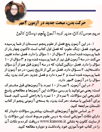 نکاتی درباره آزمون 4 مهر پنجم دبستان