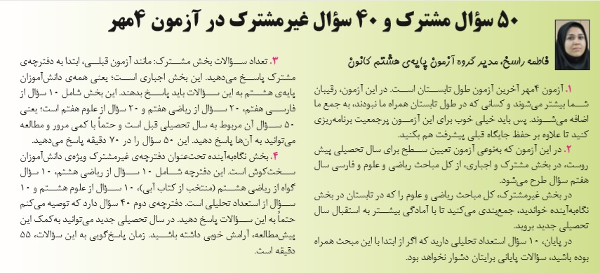نکاتی درباره آزمون 4 مهر پایه هشتم