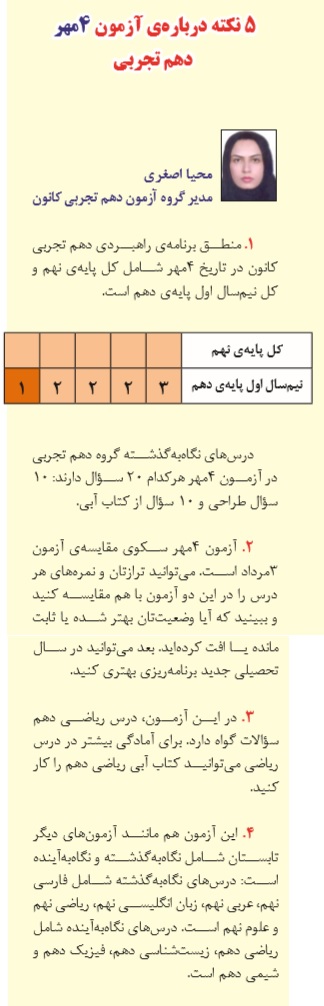 نکاتی درباره آزمون 4 مهر دهم تجربی
