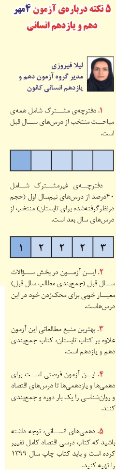 نکاتی درباره آزمون 4 مهر یازدهم انسانی