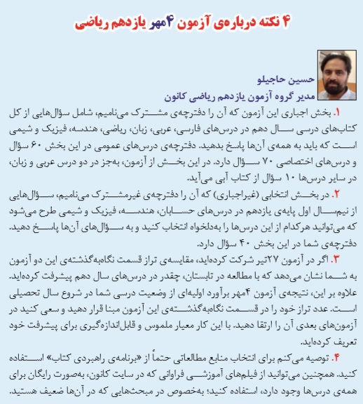 نکاتی درباره آزمون 4 مهر یازدهم ریاضی