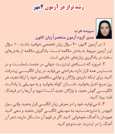نکاتی درباره آزمون 4 مهر گروه زبان