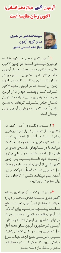 نکاتی درباره آزمون 4 مهر دوازدهم انسانی