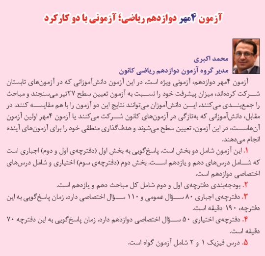 نکاتی درباره آزمون 4 مهر دوازدهم ریاضی را مشاهده نمایید.