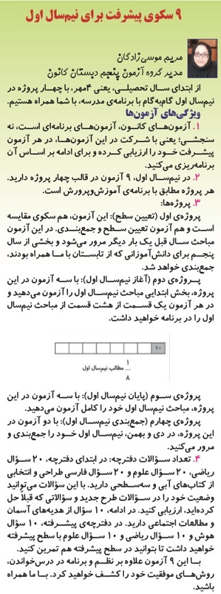 نکاتی در رابطه با آزمونهای نیم سال اول پنجم دبستان
