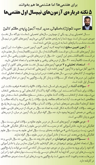 نکاتی در رابطه با آزمون های نیم سال اول پایه هفتم را مشاهده نمایید.