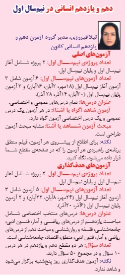 نکاتی در رابطه با آزمونهای نیم سال اول دهم انسانی